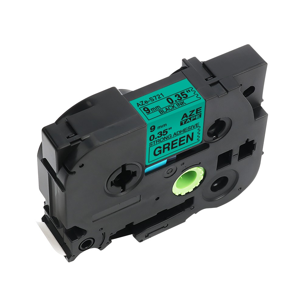 AZE-S721 ليبل برذر صيني مقاس 9 ملي طباعة اللون اسود على اخضر